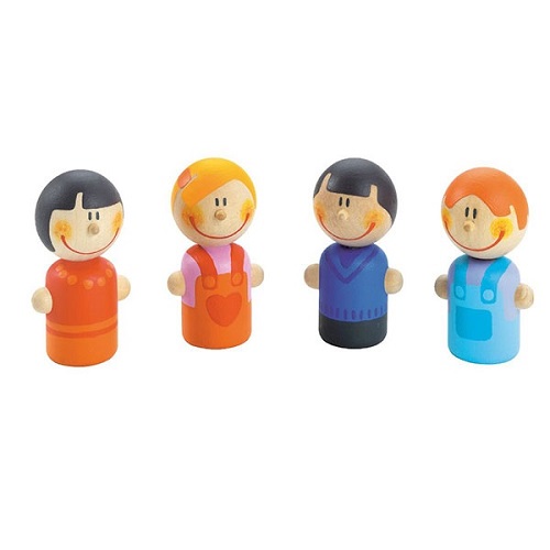 Leuke 4-delige set houten poppenhuis poppetjes Sevi.