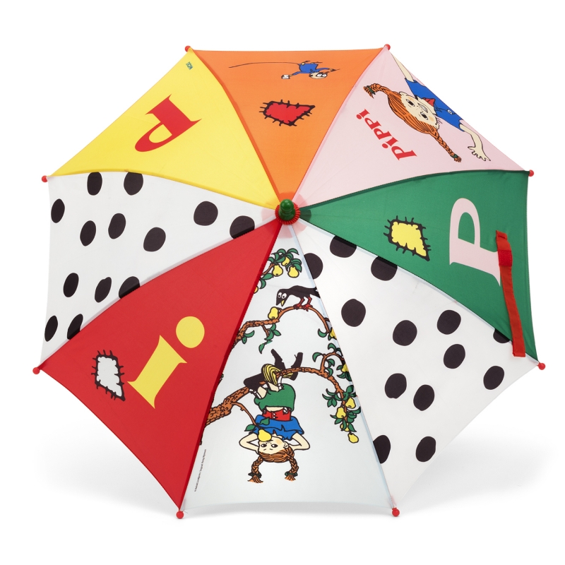 Maar jij blijft lekker droog onder deze kleurige Pippi paraplu.