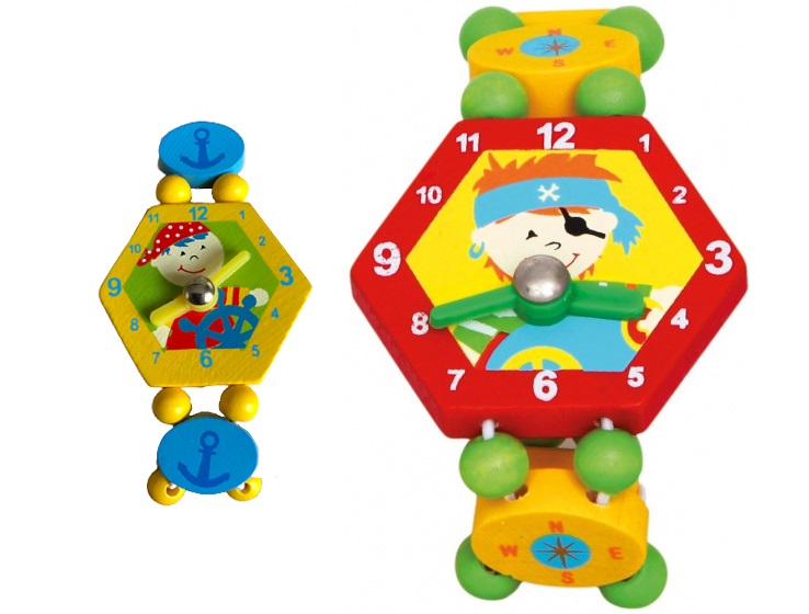 Kleurige houten armbandhorloges Piraat met verstelbare wijzers
